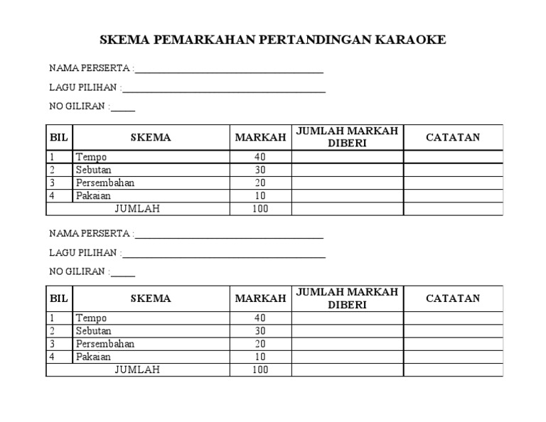 Related : Borang Pemarkahan Pertandingan Nyanyian / Borang pemarkahan nyanyian solo borang pemarkahanâ pertandingan nyanyian solo..